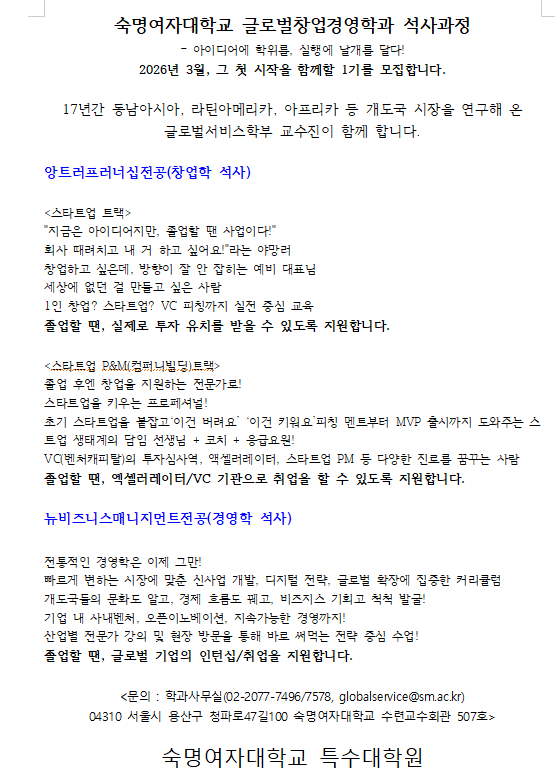 지난 20년간 동남아시아, 라틴아메리카, 아프리카 등 개도국 시장을 연구해 온 글로벌서비스학부 교수진이 함께 합니다.